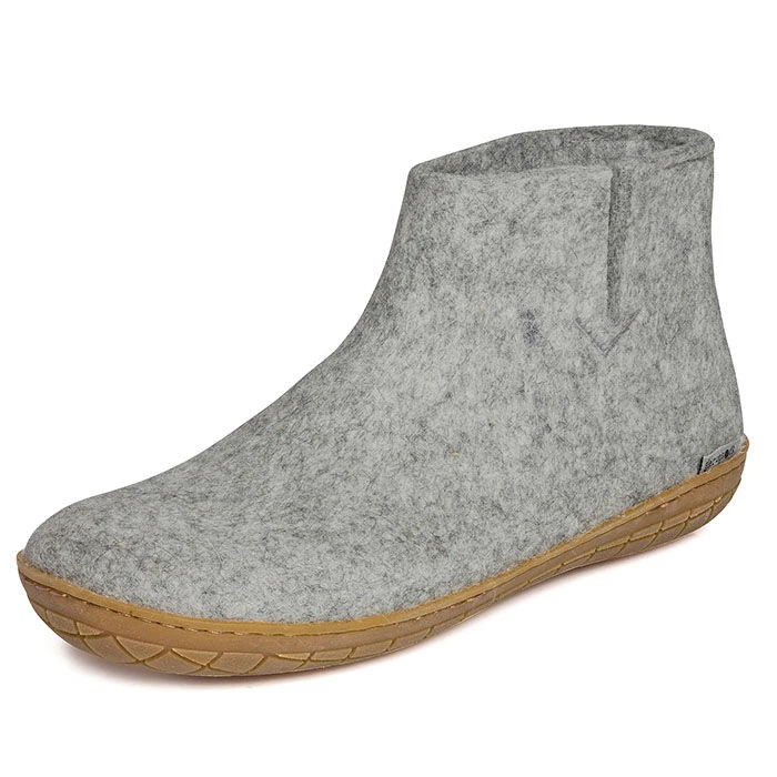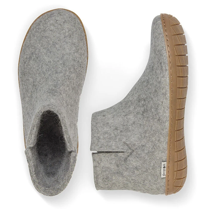 This felt slipper boot from Glerups is made of 100% pure natural wool in the with a natural rubber sole. This durable indoor shoe allows you to walk out with your garbage or empty your mailbox without need for a footwear change. The shape of the shoe follows the contours of the foot, ensuring a secure and comfy fit.