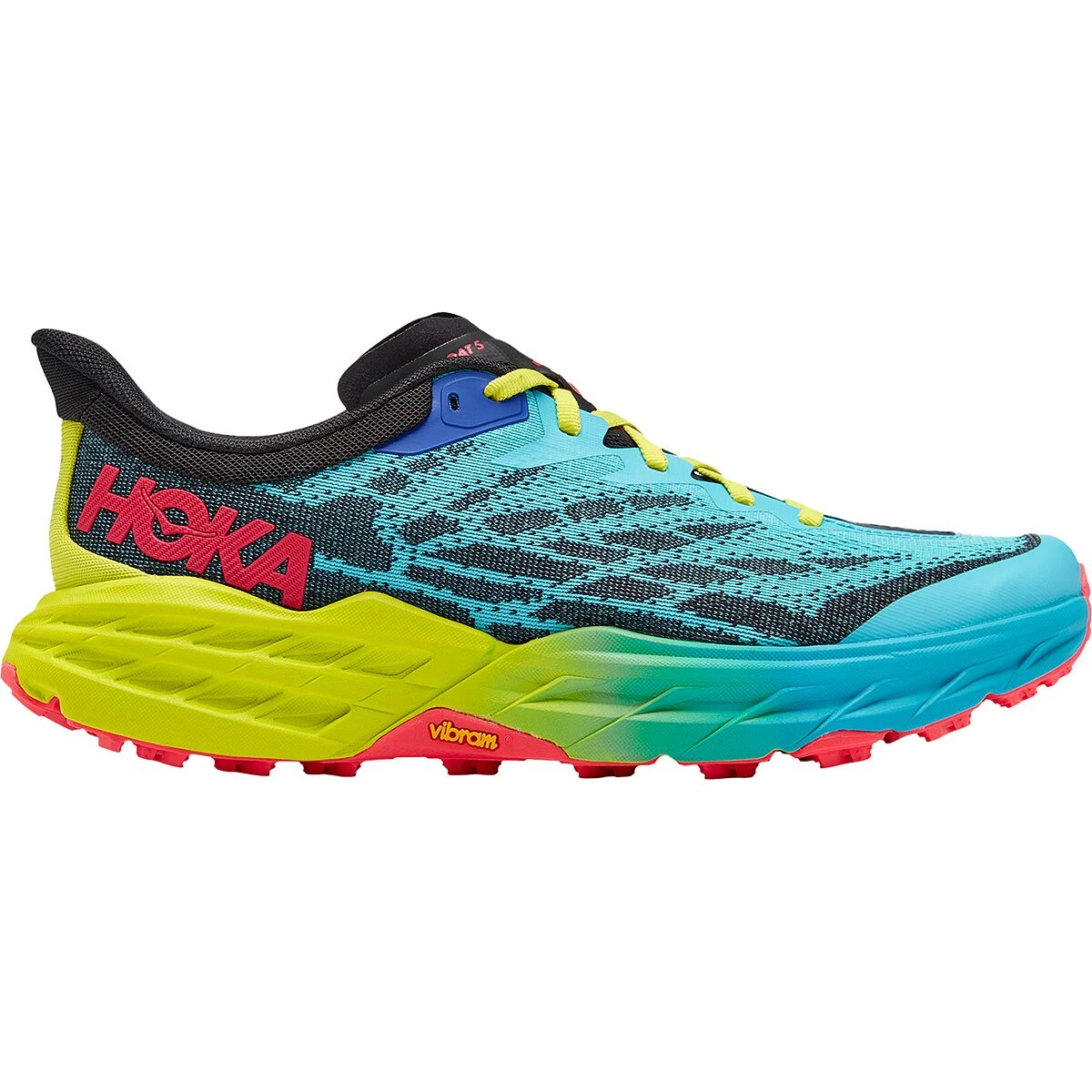 The Speedgoat 5 is at home bounding atop root- and rock-riddled singletrack. Now a half ounce lighter, this racer has picked up the pace while still padding our strikes and energizing our toe offs. The sandwich mesh upper keeps our feet breathing easy, while the aggressive lugs solidify our footing as we charge up steeps, around switchbacks, and back down to the valley floor.